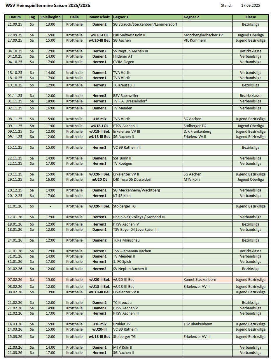 Das Nachholspiel gegen SG Aachen wurde abgesagt und 3:0 für den WSV gewertet.