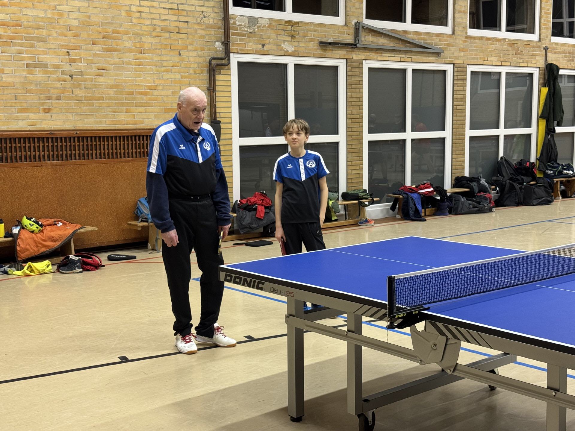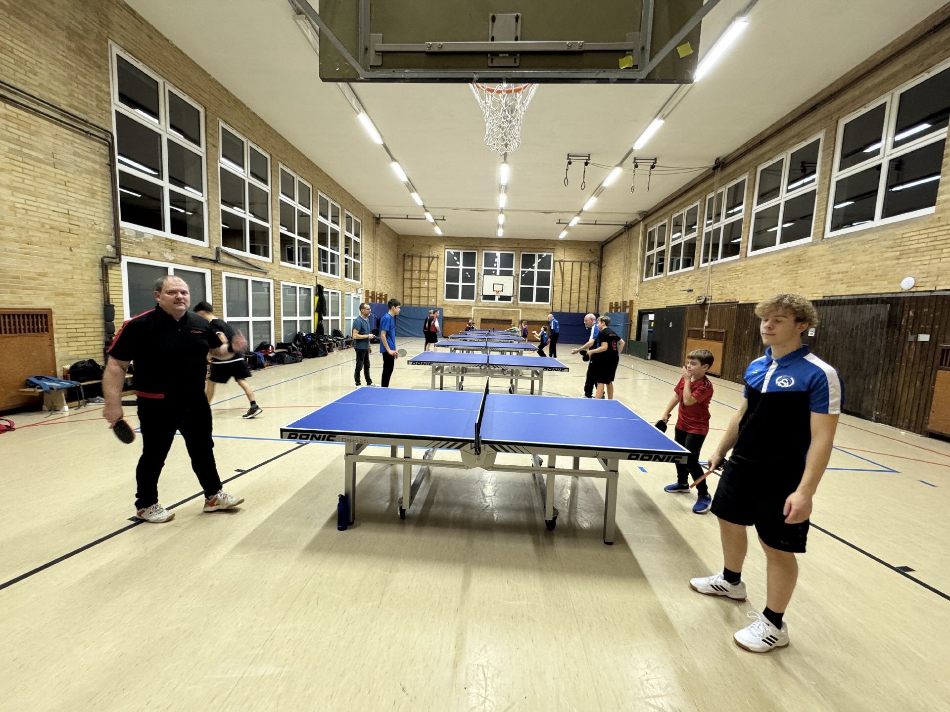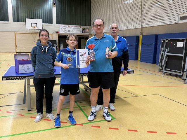 Los ging es am Samstag in der offenen Klasse in 4 Gruppen mit insgesamt 21 Teilnehmern. Am Start waren auch die Zwillinge Felix und Samuel, die trotz ihres noch sehr jungen Alters gut mithalten konnten bei den Erwachsenen. Die drei Erstplatzierten jeder Gruppe zogen ins Achtelfinale ein, bevor es im Viertelfinale dann u.a. zum Duell David gegen Sophia kam: Die stellvertretende Abteilungsleiterin ließ dem Abteilungsleiter in einem sehr engen Match letztlich mit 2:3 den Vortritt. Im Finale kam es dann zum Aufeinandertreffen von Thomas Melmann und Andreas Schäfer: Nach teils spektakulären Ballwechseln setzte sich Thommy knapp mit 3:2 durch und errang zum zweiten Mal nach 2022 den Titel des Vereinsmeisters. Im Spiel um Platz 3 setzte sich David mit 3:0 gegen Tim Nacken durch, dessen vierter Platz dennoch eine große Überraschung war.