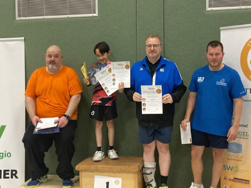 Gut einen Monat später, am letzten Oktoberwochenende, kam es dann an gleicher Stelle zum Kräftemessen in den Nachwuchsklassen. Felix und Samuel Gerz und Julian Dabrowski traten für den WSV in der Klasse Jugend 15B an, schieden jedoch alle bereits in der Gruppe (Felix nur aufgrund des schlechteren Satzverhältnisses) aus. Im Doppel überzeugten die Zwillinge Gerz jedoch und erreichten einen tollen dritten Platz!