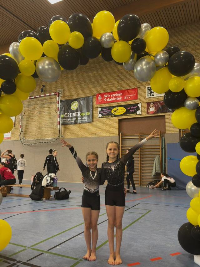 Im Wettkampf der „Minis“ aus den Jahrgängen 2008 und 2009 bestritten Sophie Nemeth und Lena Camen ihren ersten Kürwettkampf und erreichten mit souveränen Leistungen Platz 9 und 14.