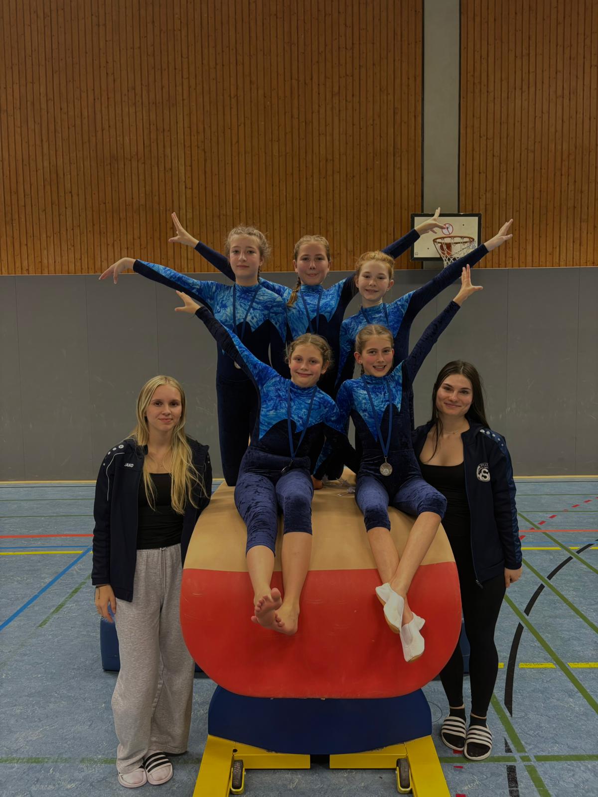 Im Verbandsgruppenentscheid am 4. November turnten noch einmal unsere kleinsten Turnerinnen und maßen sich mit den Besten aus den Turngauen Aachen, Köln, Bonn und Düren. Am Ende erreichten sie in einem starken Feld den 7. Platz.