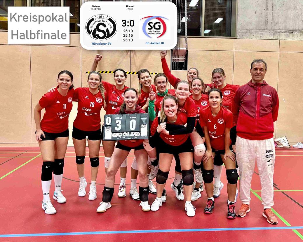 Mit einem deutlichen 3:0 Sieg gegen SG Aachen III bleibt die WSV Damenmannschaft erfolgreich im Kreispokal und tritt nun im Finale gegen die Mannschaft des SV Neptun Aachen an.