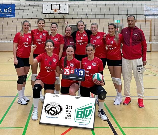Der dritte Spieltag sollte den verdienten ersten Sieg bringen. Am 01. Oktober 2022 gewann unsere Damenmannschaft in Aachen gegen die Mädels des TSV Bayer Dormagen II mit 3:0 (25:18, 25:19, 25:12) und nahm weitere drei Punkte aus der Kaiserstadt mit nach Würselen.