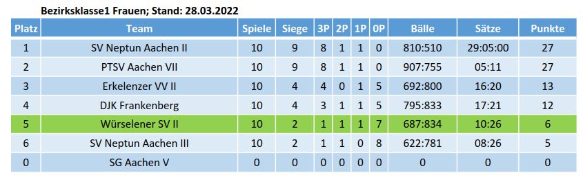 Leider konnten wir durch die sehr guten Angaben der Spielerinnen aus Aachen kein gutes, eigenes Spiel aufbauen, so dass wir leider mit einem 0:3 nach Hause fahren mussten.