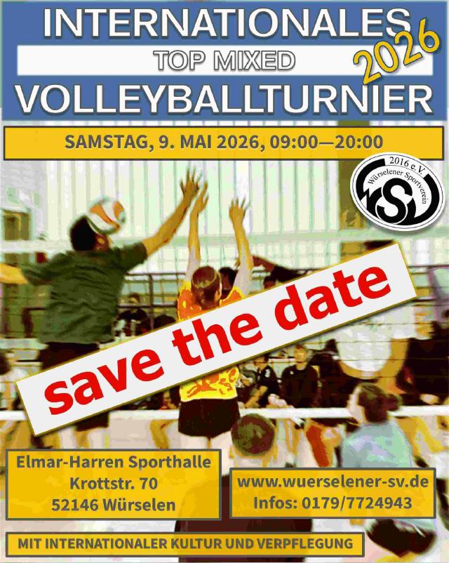 We are once again planning the International TOP Mixed Volleyball Tournament in the Elmar Harren Hall in Würselen for 2026.